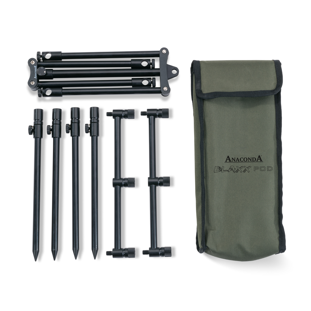 Das Anaconda BLAXX Pod ist sozusagen ein "Pocket Rod Pod". Durch sein minimales Packmaß (36 x 15 x 6 cm) lässt sich das Pod mal eben im Handschuhfach oder in einem Seitenfach Ihrer Tackletasche verstauen. Die Banksticks können im Zusammenspiel mit den 3er Buzzer Bars, welche mit Lock Nuts ausgestattet sind, zum Goal Post-Fischen auch ohne den X-Frame eingesetzt werden. Alle Schrauben sind durch das "Never Lost Screw System" gegen ungewollten Verlust abgesichert.