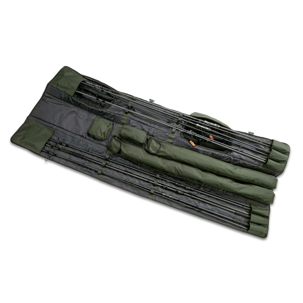 Der Anaconda Freelancer Sixpackist wie der Name schon erahnen lässt ein Futteral für 6 Ruten (3 montierte und 3 unmontierte Ruten). In den großen Aussparungen für die Rollen, finden ganz locker Big Pit Rollen bis zu einer 14000er Größe Platz. Im Innenteil sind extra Taschen angebracht, sodass auch weitere wichtige Utensilien wie Kescher, Bleie etc. sicher verstaut werden können. Die Anaconda Freelancer SP-Serie beinhaltet 4 Größen und ist demnach in 9 ft (SP-150), 10 ft (SP-160), 12 ft (SP-200) und 13 ft (SP-215) erhältlich.