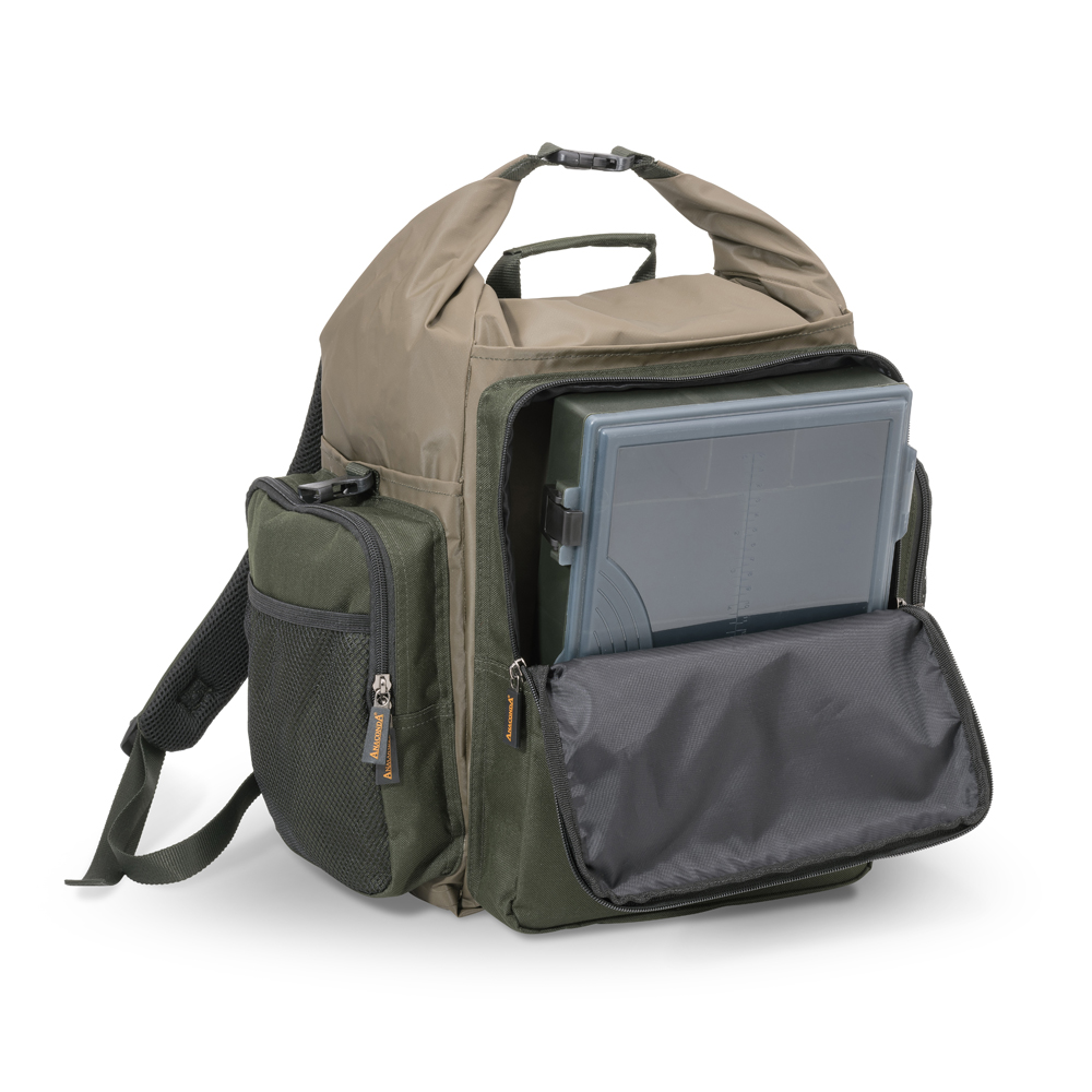 Der Name "Schlammhüpfer" allein sagt schon sehr viel über die Eigenschaften dieses genial durchdachten Rucksacks aus. Diese Tasche garantiert einen trockenen Transport, insbesondere für Bekleidung, bei nassen und schlammigen Verhältnissen. In der Tackle Chest, welche sich in der Fronttasche befindet, bekommen Sie viele wichtige Kleinteile unter. Die extra gepolsterten Gurte sind verstellbar und garantieren ein angenehmes Tragegefühl.