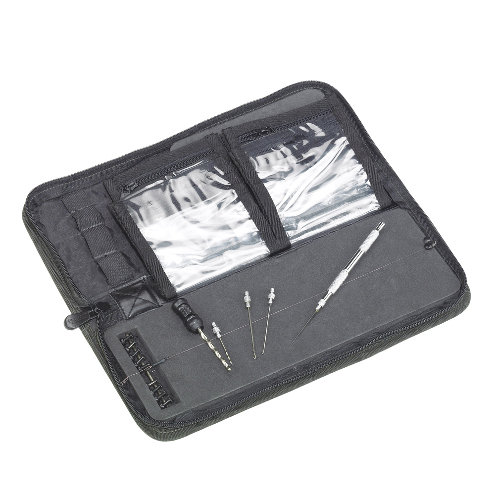 Dieses mit einem kurzen und einem extra langen Rig Board ausgestattete Wallet beinhaltet zusätzliche 8 Klarsichthüllen zum Aufbewahren von Braids, gebundenen Rigs oder anderen Accessoires. Selbstverständlich ist die Tasche mit ausreichend Pins zum Befestigen der fertigen Montagen bestückt. Der Innenraum der Tasche enthält 8 elastische Gummibänder zum Einhängen von Boilienadel, Bohrer oder ähnlichem. • 1 Rig Board mit einer Länge von: ca. 33 cm • 1 Rig Board mit einer Länge von: ca. 18 cm • 8 Klarsichttaschen mit Reißverschluss • Maße: ca. 35 x 14 x 5,5 cm • Material: 600 x 450D aus wasserabweisenden PVC-Coating • Lieferung ohne Inhalt