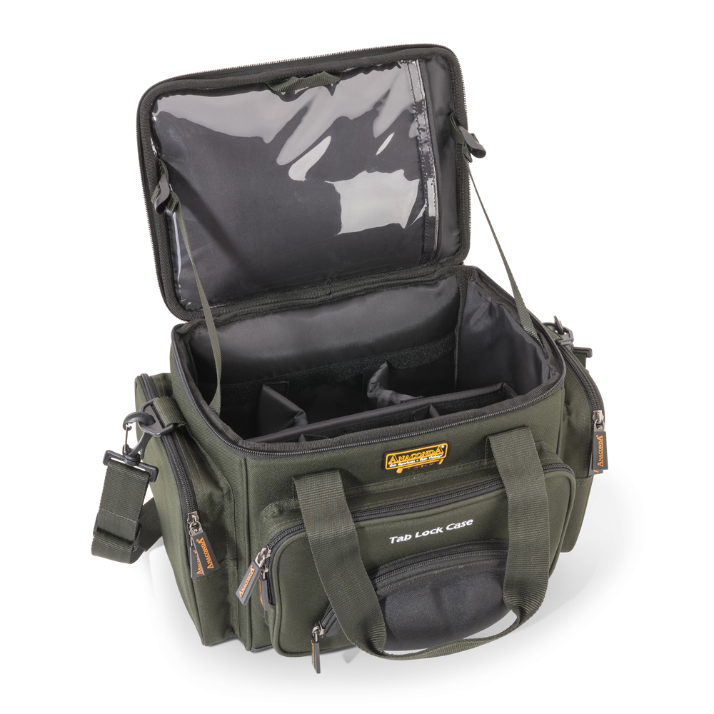 Die Anaconda Tab Lock Case ist eine Tasche mit vielen nützlichen Features. Hier findet sich zum Beispiel ein angebrachtes Etui für die teure Polarisationsbrille an der Vorderseite der Tasche. Zudem befindet sich noch ein Fach an der Front, in dem einige Kleinigkeiten verstaut werden können. Zwei Außentaschen rechts und links, sowie ein Hardcover-Deckel für Montagen mit eingebauter Tablethalterung machen diese Tasche besonders.