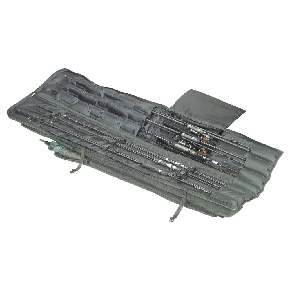 Das Anaconda Travel Rod System ist ein bis ins kleinste Detail durchdachte Rutenfutteral. Das Travel Rod System bietet Platz für 3 montierte + 3 unmontierte Ruten. Durch die spezielle Einteilung der extra starken Polsterung ist ein sicherer Transport der wertvollen Ruten jederzeit garantiert. Die aufgesetzten Seitentaschen bieten ausreichend Platz für Kescher, Bank Sticks oder Schirm. Eine 3-teilige Aluminium Stange sorgt nicht nur für eine schöne „Case Form“, sondern auch für sicheren Halt im Gelände.