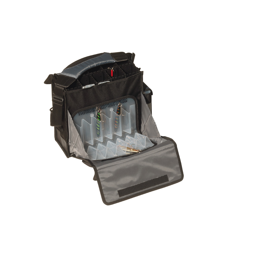 Im Hauptfach gibt es zehn feste Unterteilungen, die auch etwas größere Pilker aufnehmen, ohne dass diese sich untereinander verheddern. Die seitlich angebrachte Außentasche beherbergt eine Box, in der z.B. Wirbel ihren Platz finden. An der gegenüberliegenden Seite ist ein Zangenhalter angebracht. In der Vortasche haben noch etwas größere Utensilien ausreichend Raum. Das Besondere ist, dass wenn man den starken aber perfekt bedienbaren Klettverschluss des Hauptfaches öffnet, noch 12 separate Halter für kleinere Pilker zum Vorschein kommen. So kann man auf kleinstem Raum eine Menge Material unterbringen. Auf der Unterseite der Tasche befinden sich Löcher, die für die Belüftung der nassen Köder sorgen, damit diese nicht korrodieren. Tragegriffe und Riemen sorgen für einen bequemen Transport und das robuste Material für lange Haltbarkeit. • Außenmaße B x H x T: 36 x 32 x 20 cm • Material: Heavy Duty Tarpaulin • Material: 600D Polyester • wasserabweisendes PVC Coating • Lieferung ohne Inhalt