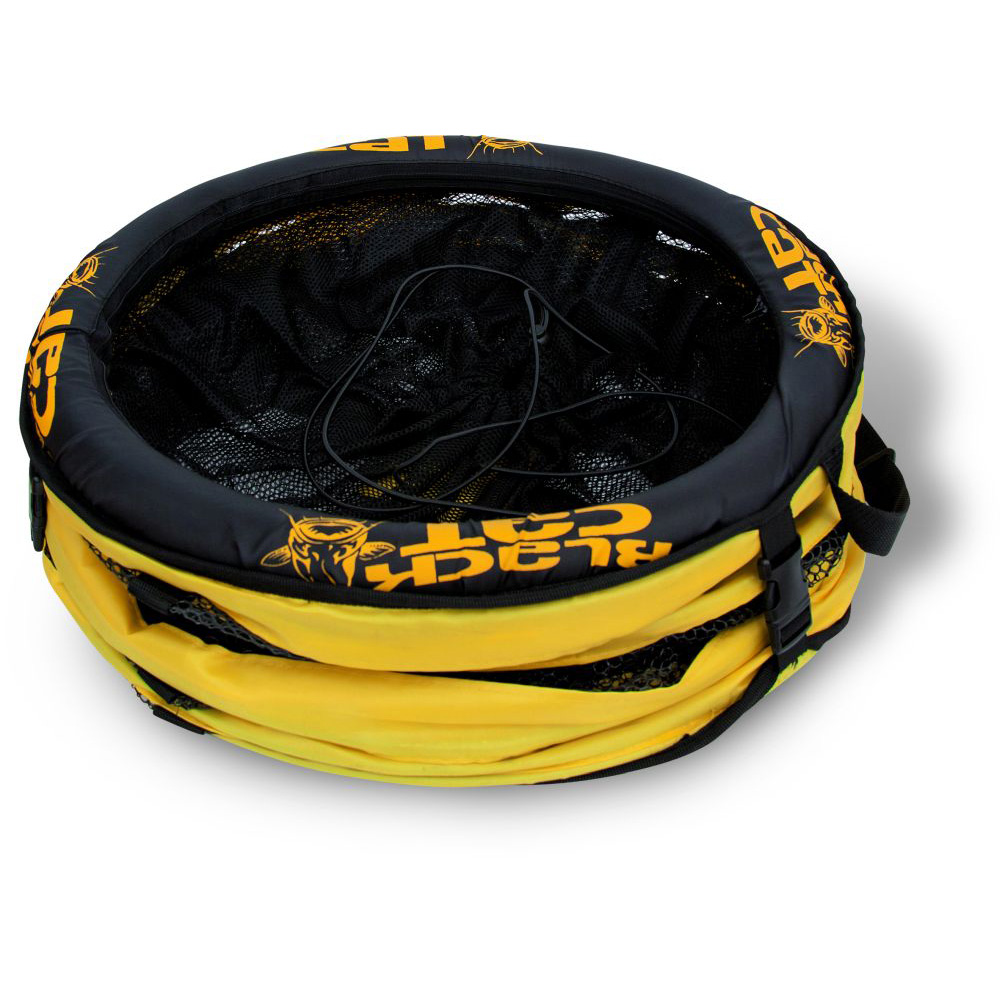 Spezial-Setzkescher für Boots- und Uferangler. Im Inneren des Keschers ist eine Drahtspirale, die ein Zusammenfallen des Keschers verhindert und für Köderfische im Stillwasser oder auch starker Strömung eine optimale und fischschonenende Hälterung ermöglicht. Der Kescher ist für den Transport platzsparend zusammenklappbar.