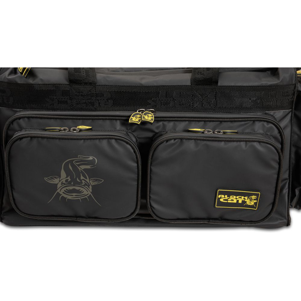 Robuste Ruten-Transporttasche für bis zu drei montierte Welsruten mit großer Rollenausbuchtung. In den kleinen aufgesetzten Seitentaschen finden Handschuhe und diverse Kleinteile wie Vorfachschnur und Haken Platz. In der großen Seitentasche können Banksticks mit Umlenkern sicher transportiert werden. Die Tasche kann bequem wie ein Rucksack getragen werden.