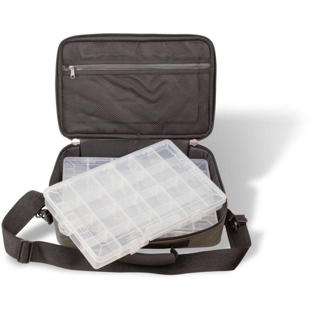 Umhängetasche für Spinn- und Aktivangler mit zwei Plastikboxen. Hier finden Blinker, Gummifische und Clonk Teaser ausreichend Platz. Die Tasche lässt sich bequem tragen und ist schmutz- und wasserabweisend.