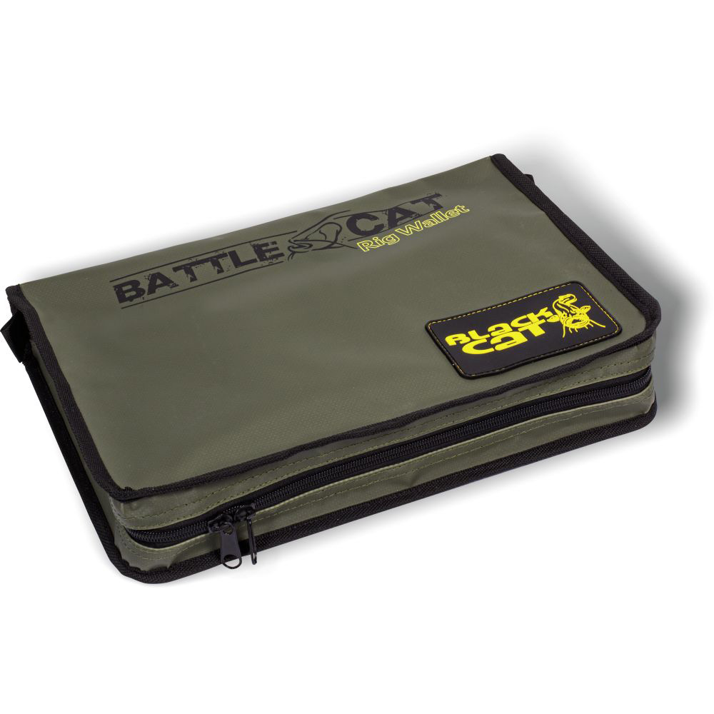 Gummierte, Schmutz- und Wasserabweisende Vorfachtasche für den Transport von 10 Wallermontagen. 5 große und 5 kleine extrem verstärkte Schutzhüllen im Inneren des Rig Wallet XXL garantieren eine sichere Aufbewahrung fertig gebauter Welsvorfächer und bieten dem Angler einen guten Überblick im Einsatz am Wasser.