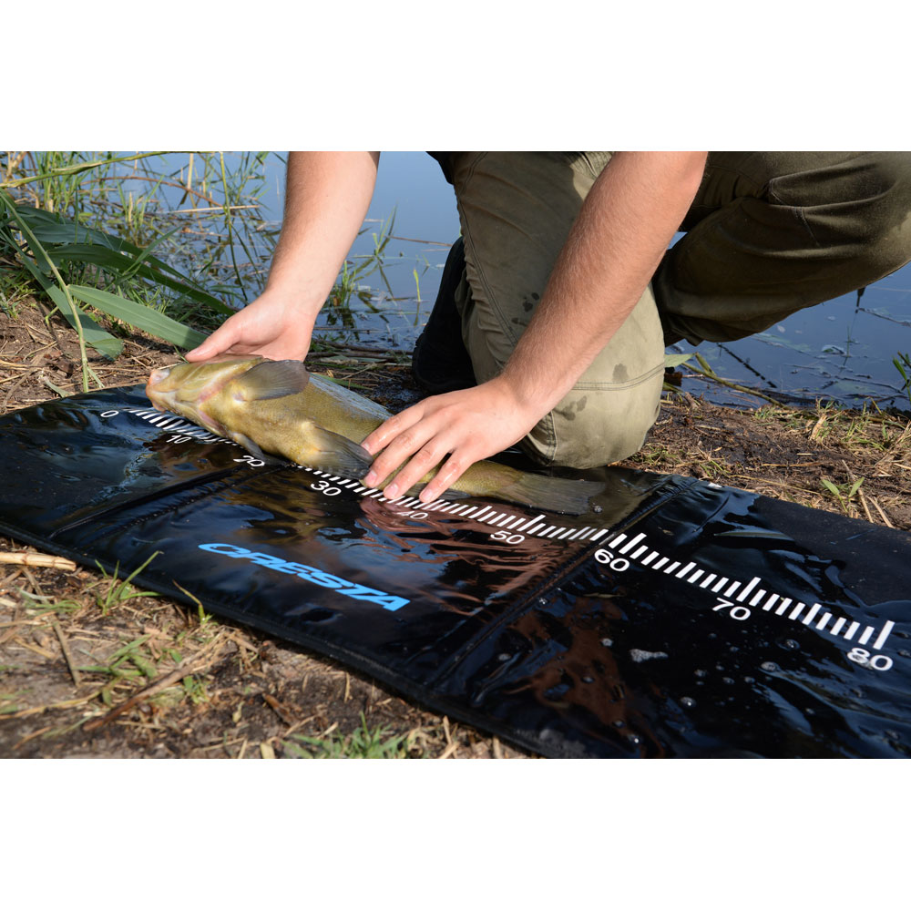 Diese leichtgewichtige Abhakmatte ist mit einer aufgedruckten Messskala ausgestattet, sodass das sichere Abhaken und Ausmessen der Fische sehr schnell und kontrolliert erfolgen kann. Für einen optimalen Schutz der Fische sollte die Matte vor demgebrauch mit Wasser befeuchtet werden. Die Ruler Mat kann zu einer kompaktengröße zusammengefaltet werden, um in eine Setzkescher- oder Carry All Tasche zu passen.