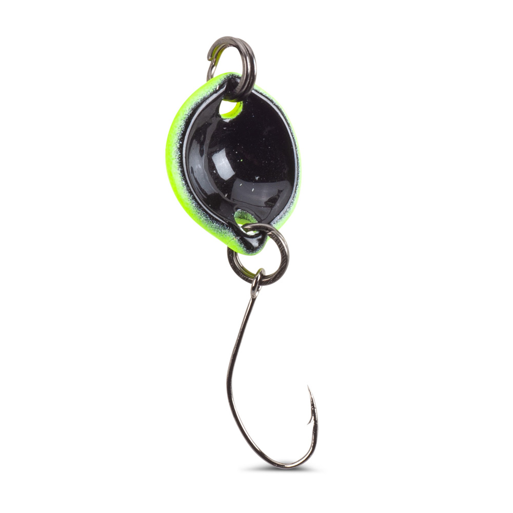 Forellenblinker mit kontrastreich gestalteter Vorder-und Rückseite! Da an manchen Gewässern keine Kunstköder mit Drilling verwendet werden dürfen, ist dieses Modell mit einem extrem scharfen Einzelhaken ausgestattet.
