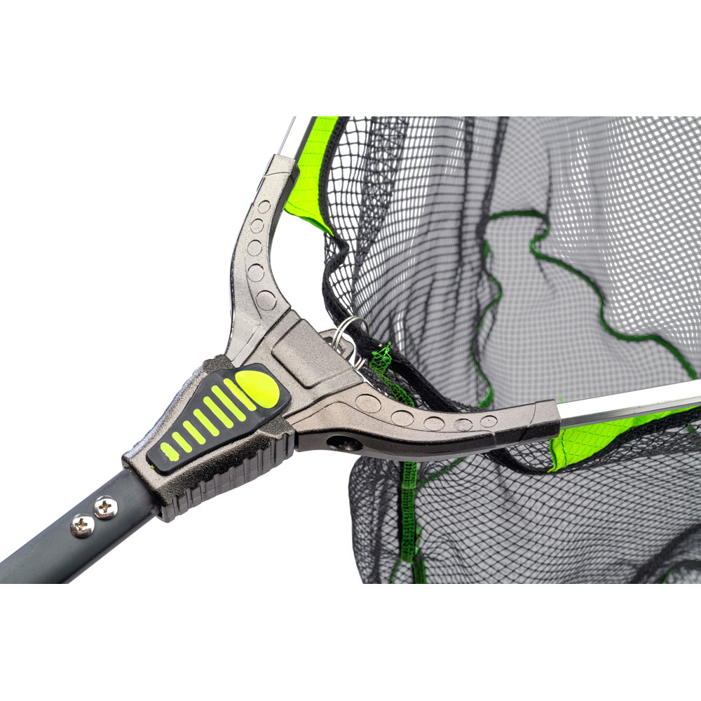 Nahezu unzerstörbar und optisch ein echter Hingucker! Der Bärenstarke Klappverschluss ist aus robustem Metall und garantiert eine lange Lebensdauer. Zudem ist der MaxForcer mit einem Anti-Hook Netz mit umweltfreundlicher Gummierung ausgestattet, diese ermöglicht ein leichtes Lösen der Haken aus den Maschen. Auch ist es sehr schonened für die Fische, da es weder Schleim noch Wasser aufnimmt. Um lästige Gerüche zu vermeiden einfach ins Wasser eintauchen, danach kräftig durchschütteln. Durch den ergonomisch geformten Endgriff und den Duplon Frontgriff liegt der Kescher optimal in der Hand. Kescherstange, Rahmen und Schrauben zur Arretierung der Länge, sind aus hochwertigem Aluminium gefertig.