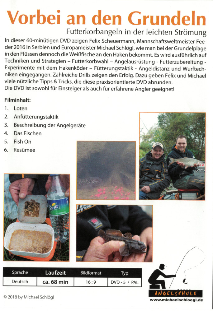 In dieser 60-minütigen DVD Vorbei an den Grundeln zeigen Felix Scheuermann, Mannschaftsweltmeister Feeder 2016 in Serbien und Europameister Michael Schlögl, wie man bei der sich ausbreitenden Grundelplage in den Flüssen dennoch die Weißfische an den Haken bekommt.