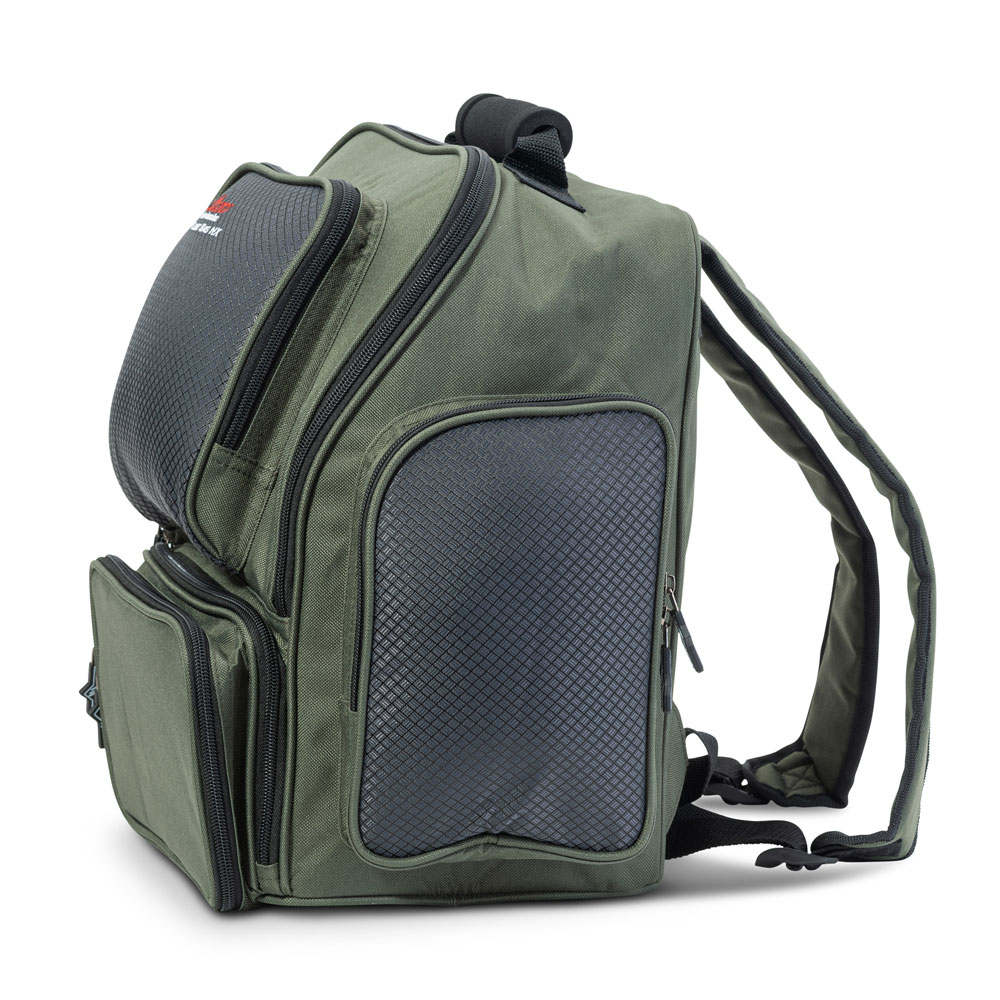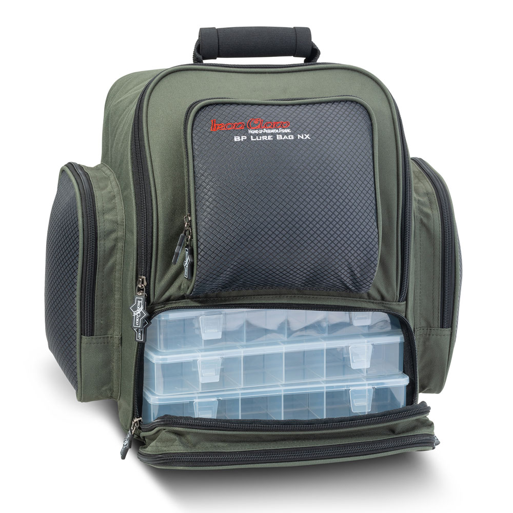 Das BP im Namen des IC BP Lure Bag NX steht für "Back Pack". Das ist der Tatsache geschuldet, dass dieses Modell als Rucksack getragen werden kann. Im Lieferumfang befinden sich drei Gerätekisten, welche im unteren Fach untergebracht sind. Am oberen Fach ist noch eine Vortasche angebracht und auf beiden Seiten befinden sich auch noch zusätzlich aufgesetzte Taschen.