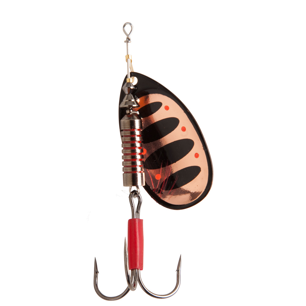 Klassische Inline Spinner gibt es unzählige, aber die Unterschiede in Qualität und Funktion sind immenz. Viele Spinner sehen zwar gut aus, funktionieren aber nur eingeschränkt. Die neuen F-Blade Spinner von Iron Claw hingegen sind hervorragend verarbeitet, laufen beim geringsten Zug an und sind mit hochwertigen Komponenten wie z.B. Mustad Drillingen bestückt. Eine weitere Besonderheit sind die auf Innen- und Außenseite unterschiedlichen Dekore der Spinnerblätter. Einfach gesagt, die F-Blade Spinner bringen eine starke Optik mit einer Topaktion unter einen Hut.