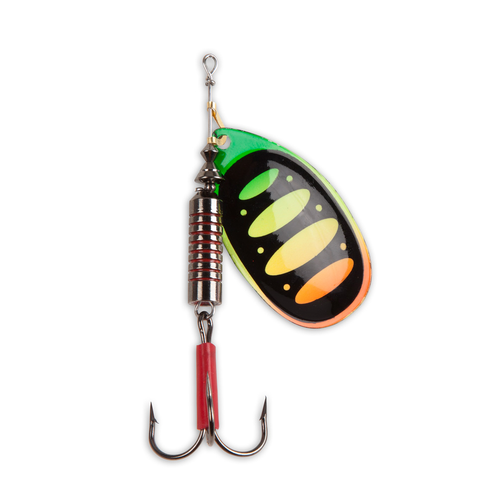 Klassische Inline Spinner gibt es unzählige, aber die Unterschiede in Qualität und Funktion sind immenz. Viele Spinner sehen zwar gut aus, funktionieren aber nur eingeschränkt. Die neuen F-Blade Spinner von Iron Claw hingegen sind hervorragend verarbeitet, laufen beim geringsten Zug an und sind mit hochwertigen Komponenten wie z.B. Mustad Drillingen bestückt. Eine weitere Besonderheit sind die auf Innen- und Außenseite unterschiedlichen Dekore der Spinnerblätter. Einfach gesagt, die F-Blade Spinner bringen eine starke Optik mit einer Topaktion unter einen Hut.