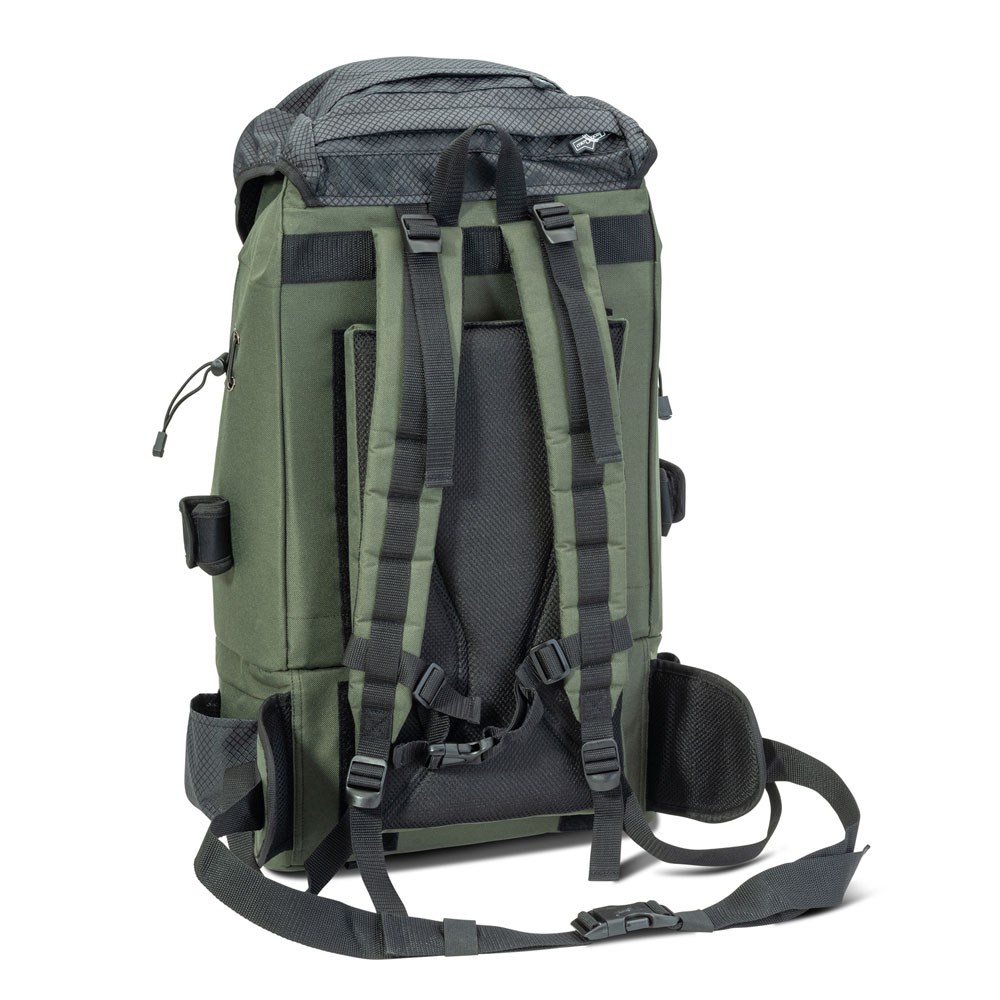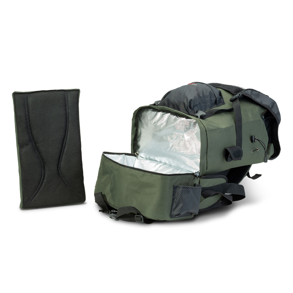 Der Iron Claw Mountaineer ist der perfekte Rucksack für Ihren Raubfischangeltag am Wasser! Bei dem überaus großen Hauptfach bekommt der moderne Raubfischangler alles transportiert, was nötig ist um sicher zum Erfolg zu gelangen. Der Rückenbereich wurde mit einer rücken- und nierenschonenden Polsterung, welche herausklettbar und auch als Sitzkissen verwendbar ist, versehen um angenehmen Tragekomfort zu garantieren. An eine Fixierung durch einen Brustgurt wurde außerdem gedacht. Stabilität bekommt der Rucksack durch ein eingearbeitetes, ultraleichtes Aluminiumgestell. Im unteren Teil ist ein Kühlfach integriert. Auf der linken und rechten Seite sind jeweils Vorrichtungen zum Transport von Ruten und Keschern, ideal auch wenn man mit dem Fahrrad unterwegs sein sollte.