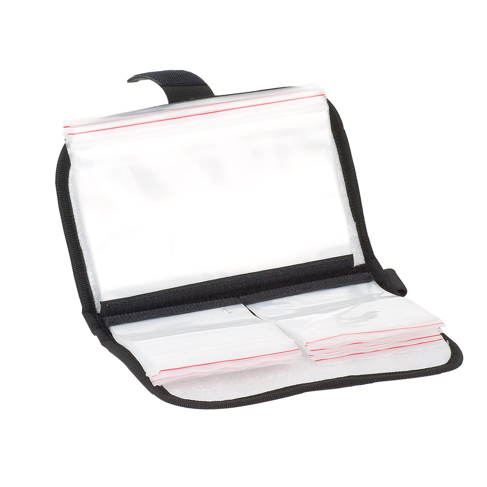 Tasche zum sortieren und Organisieren von losen Gummiködern. Ausgestattet mit drei, in zwei versch. Größen, verschließbaren Klarsichthüllenmäppchen, in die sich die Softköder einsortieren lassen. An den Innenseiten des Softlure Bags, lassen sich auch montierte Köder verstauen. Auf der Außenseite ist noch eine Netztasche angebracht. Mit Hilfe eines Karabinerhakens und einer Gürtelschlaufe lässt sich das ganze Teil auch gut transportieren. • Außenmaße: 23 x 5 x 16 cm