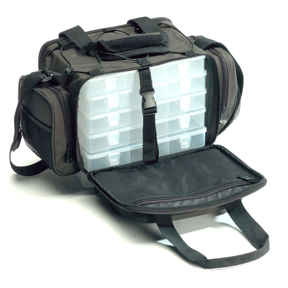 Mit fünf Boxen lässt sich hier eine Menge Tackle unterbringen. Trotzdem kann man diese Tasche noch bequem transportieren. Durch zusätzliche Außen- und Netztaschen sehr praktisch. Aus wasserabweisendem, strapazierfähigem 600D-Material hergestellt und mit einer Rundumpolsterung ausgestattet. • Passende Gear Box: Typ 2