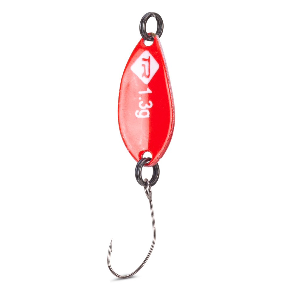 Forellenblinker mit kontrastreich gestalteter Vorder-und Rückseite! Da an manchen Gewässern keine Kunstköder mit Drilling verwendet werden dürfen, ist dieses Modell mit einem extrem scharfen Einzelhaken ausgestattet. Der Iron Trout Gentle Spoon ist in mehreren Farben erhältlich. Lieferumfang 1 Stück der gewählten Farbe.