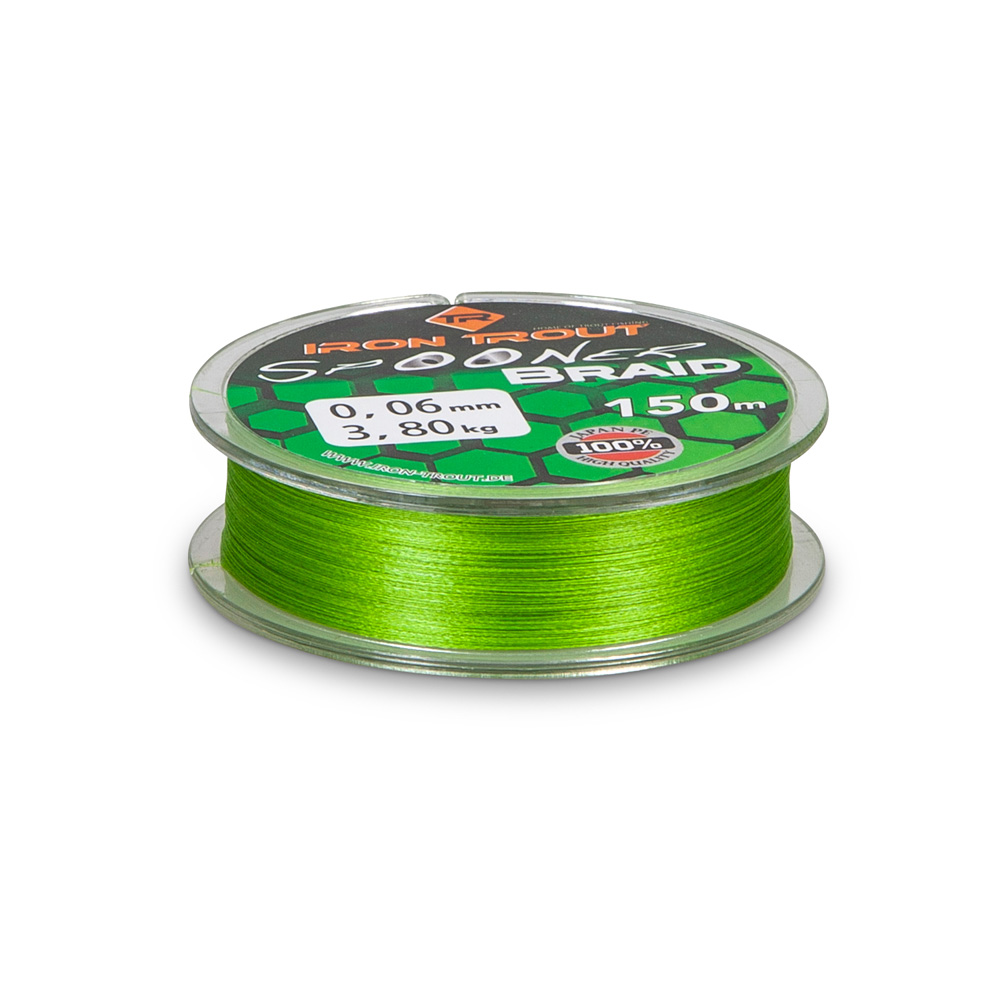 Auch zum Forellenfischen, speziell beim effektiven Angeln mit Spoons, macht eine beinahe dehnungsfreie, geflochtene Schnur Sinn. Demensprechend bieten wir jetzt mit der Spooner Braid diese Art von Schnur an. Das sehr eng verflochtene Japan-PE-Material verfügt über eine glatte Oberfläche und sorgt so für präzise und weite Würfe. Die Geflechtschnur ist aber nicht nur beim Fischen mit Spoons einsetzbar, sondern auch zum Fischen mit z.B. Sbirolinos auf größere Distanzen macht sie eine gute Figur. Erhältlich in fluo-gelb, etwas gedeckter in hellem oliv-grün und weiß.