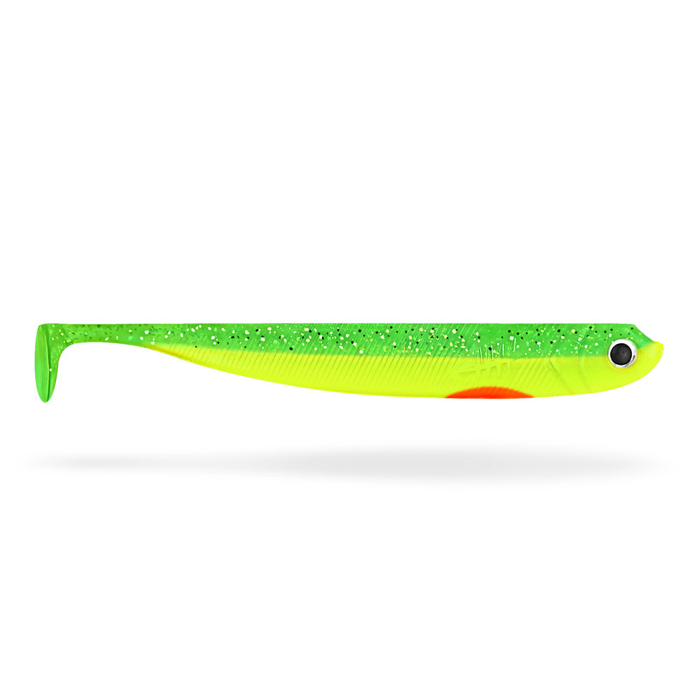 Die Aktion des Schaufelschwanzes der Lieblingsköder 12,5cm Gummiköder ist hochfrequent und bewegt sich bereits bei langsamer Köderführung. Auf den Seiten hat der Gummifisch kleine Rillen, die dem Körper zusätzlich eine dezente Flankbewegung geben. Durch die großen runden Augen bekommt der Köder einen zusätzlichen Angriffspunkt.