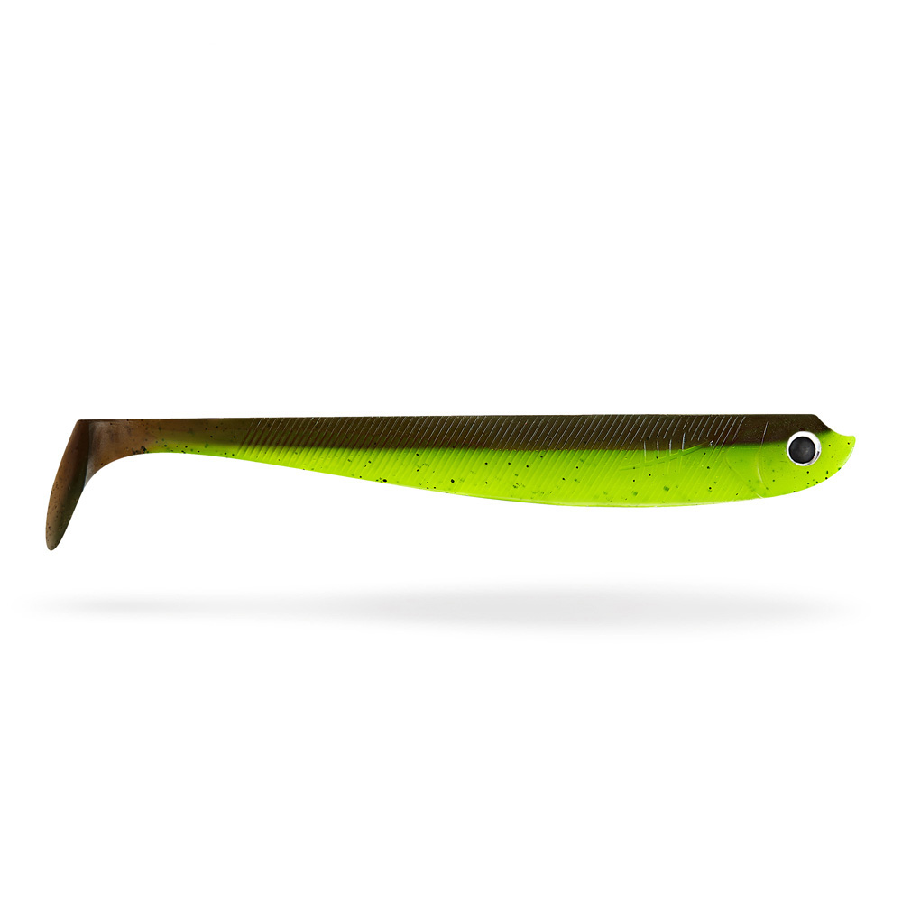 Die Aktion des Schaufelschwanzes der Lieblingsköder Gummiköder ist hochfrequent und bewegt sich bereits bei langsamer Köderführung. Auf den Seiten hat der Gummifisch kleine Rillen, die dem Körper zusätzlich eine dezente Flankbewegung geben. Durch die großen runden Augen bekommt der Köder einen zusätzlichen Angriffspunkt.