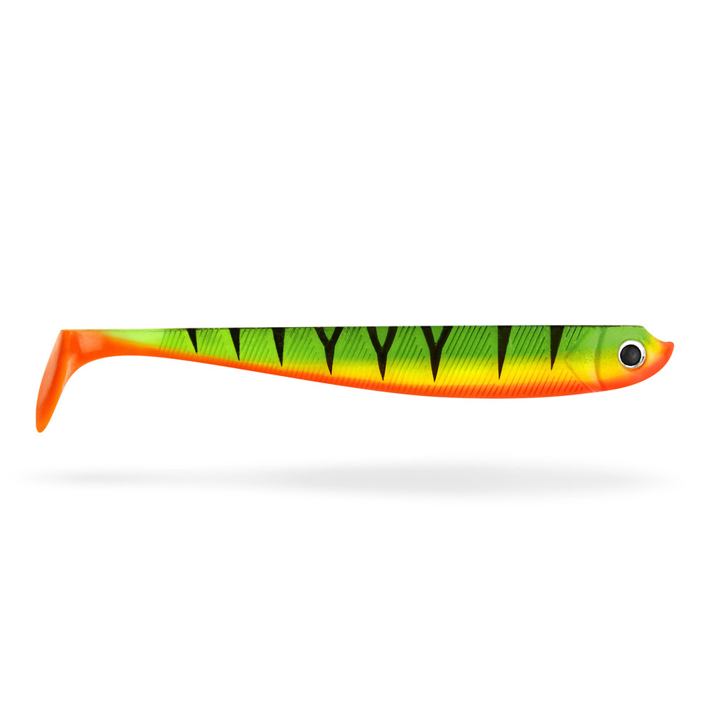 Die Aktion des Schaufelschwanzes der Lieblingsköder Gummiköder ist hochfrequent und bewegt sich bereits bei langsamer Köderführung. Auf den Seiten hat der Gummifisch kleine Rillen, die dem Körper zusätzlich eine dezente Flankbewegung geben. Durch die großen runden Augen bekommt der Köder einen zusätzlichen Angriffspunkt.
