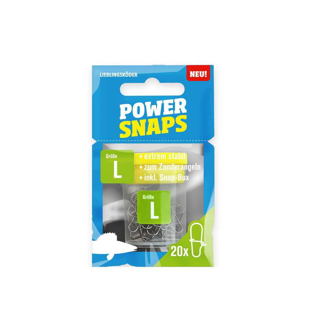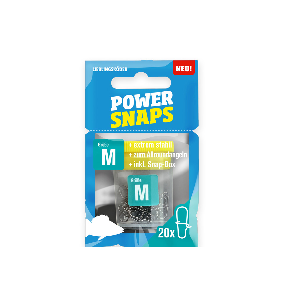 Die Lieblingsköder Power Snaps sind perfekt auf das Angeln mit Lieblingsködern und SpinMads abgestimmt. Die Snaps werden in einer wieder verschließbaren Dose geliefert. Die Dosen mit der gelben Lieblingsköder-Kappe sind sicher verschlossen und werden sich auch beim Transport nicht öffnen. Platzsparend und dennoch immer schnell greifbar.