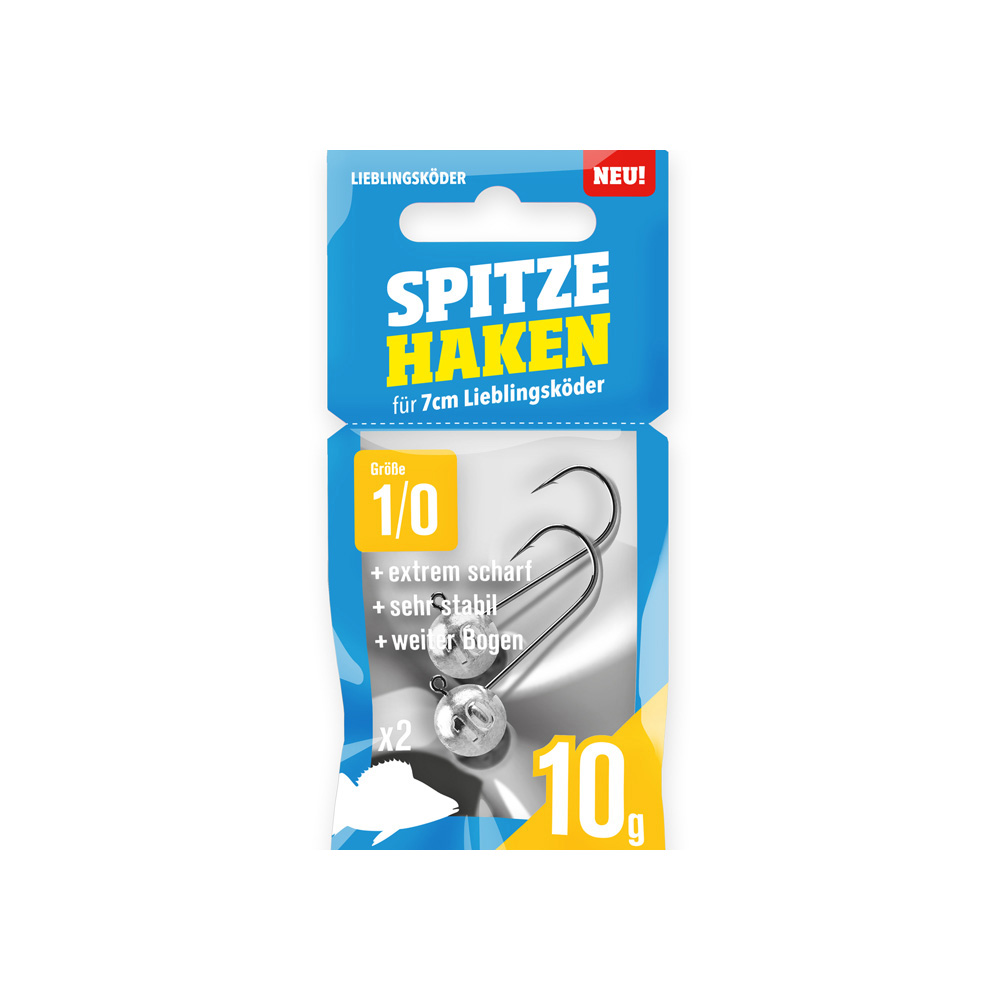 Die Lieblingsköder Angelhaken sind Nadelspitz und dennoch robust genug, um mehreren Bissen standzuhalten. Eine Besonderheit der Spitzen Haken ist das eingedruckte Gewicht auf der Vorderseite des Bleikopfs sowie die eingedruckte Hakengröße auf der Rückseite. Dadurch findet man immer den passenden Haken in der Angelkiste, auch wenn sich mehrere Haken in einem Fach befinden.