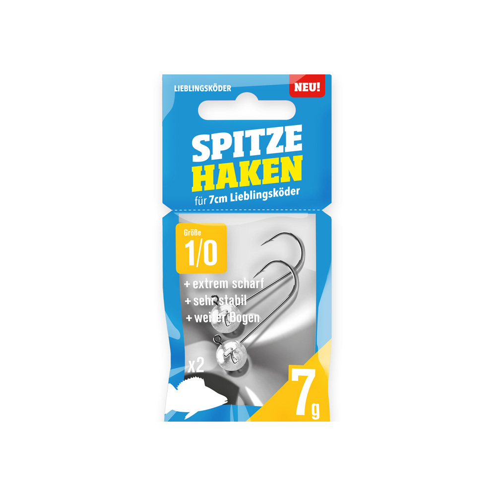 Die Lieblingsköder Angelhaken sind Nadelspitz und dennoch robust genug, um mehreren Bissen standzuhalten. Eine Besonderheit der Spitzen Haken ist das eingedruckte Gewicht auf der Vorderseite des Bleikopfs sowie die eingedruckte Hakengröße auf der Rückseite. Dadurch findet man immer den passenden Haken in der Angelkiste, auch wenn sich mehrere Haken in einem Fach befinden.