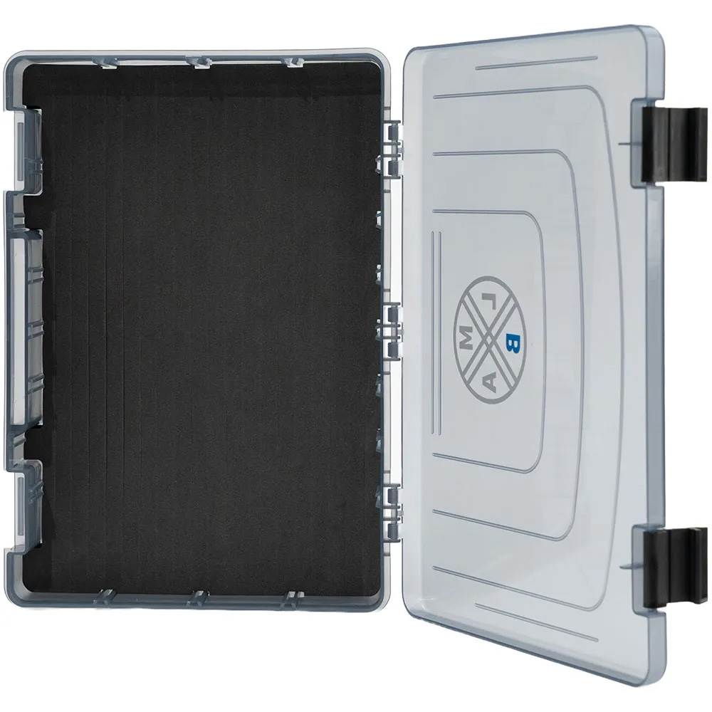 Die LMAB Tackle Box Jig & Rig ist eine in verschiedenen Versionen erhältliche Tackle Box für die Aufbewahrung von Skirted Jigs, Bladed Jigs, Shallow Rigs und Stinger. Diese Boxen haben ein großes Hauptfach mit einer geschlitzten EVA-Schaum-Einlage, in welche die Haken gedrückt werden. Das Material der Box ist hochwertiger, rauchig-grauer Kunststoff, welcher einen UV-Schutz für den Inhalt bietet. Sichere Scharnierverschlüsse sorgen dafür, dass die Boxen geschlossen bleiben, lassen sich aber bei Bedarf einfach öffnen. Je nach Variante haben die Boxen entweder eine Scharnier-Verschlussleiste oder normale Scharnier-Verschlüsse.