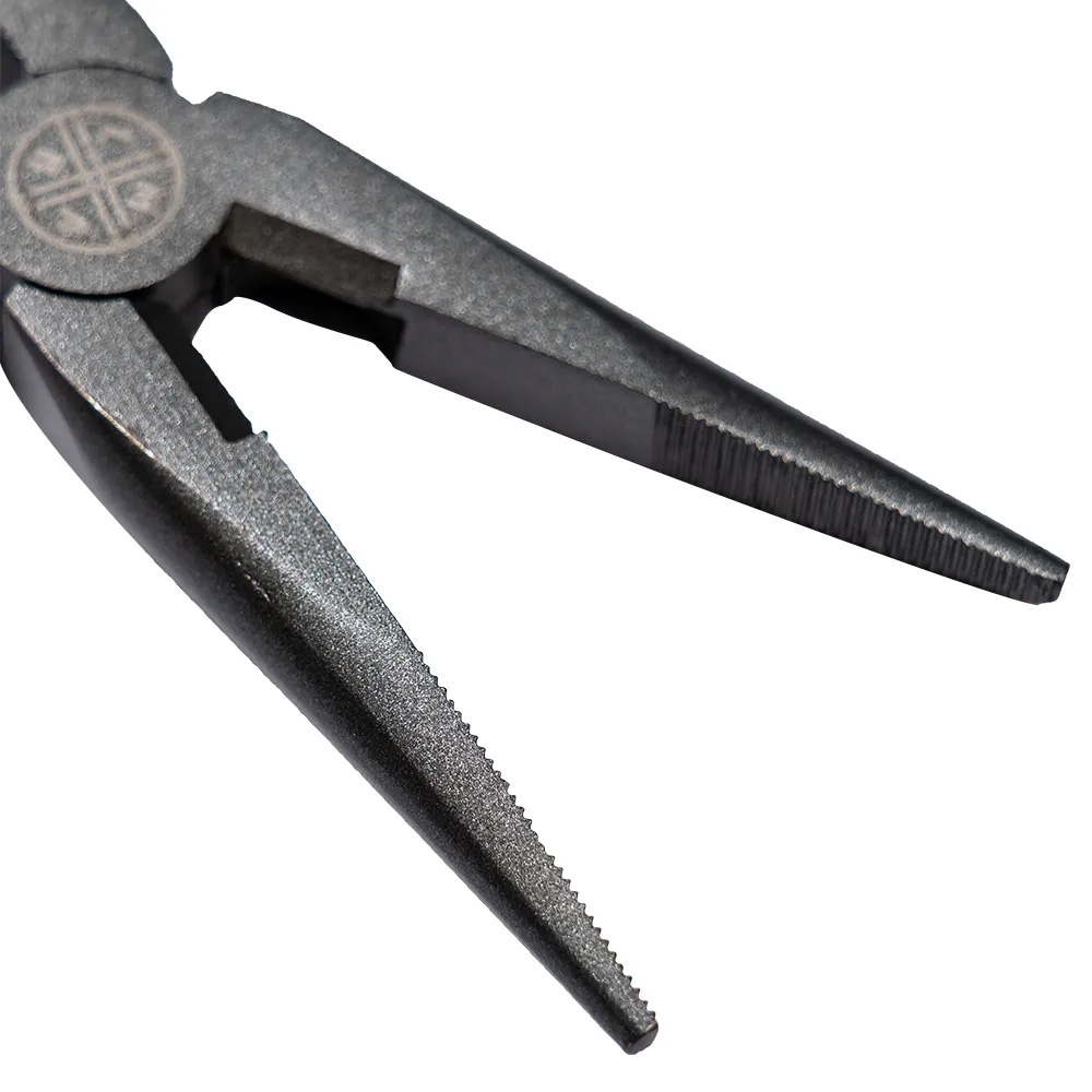 Die LMAB Lösezange gerade ist eine 15 cm lange, gerade Spitzzange, welche sich besonders gut zum Haken Lösen bei Hardbaits eignet. Mit ihr kann man die Drillinge besonders gut greifen und heraus drehen. Zusätzlich ist die Zange mit einer Schneidefläche versehen, mit der man Stahlvorfach-Material und dicke monofile Schnüre durchknipsen kann. Die gummierten Griffe liegen perfekt in Hand und dank der grobkörnigen Oberfläche hat man selbst mit nassen, glitschigen Händen noch ordentlichen Grip. Die Lieferung erfolgt in einer umweltschonenden Verpackung aus Pappe.