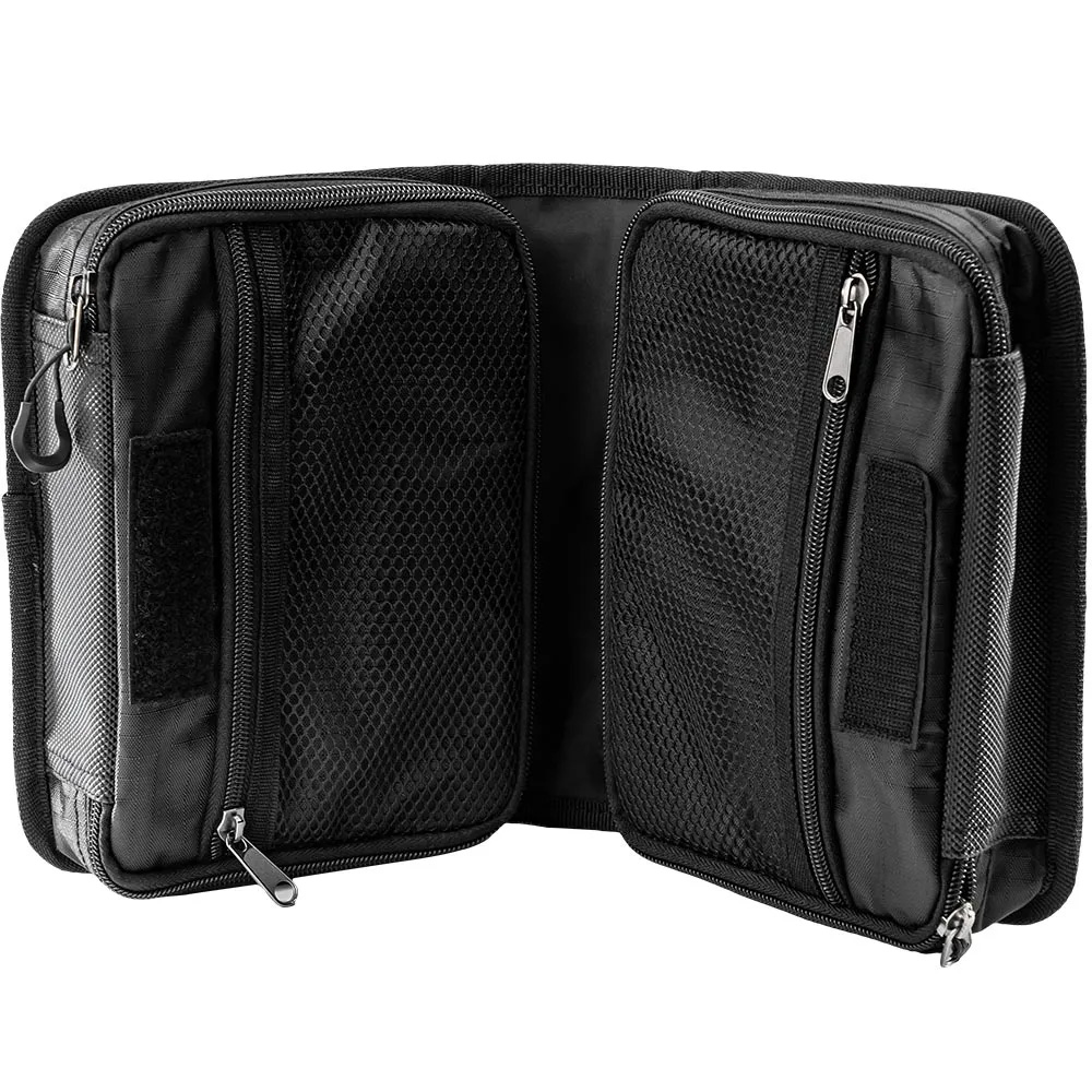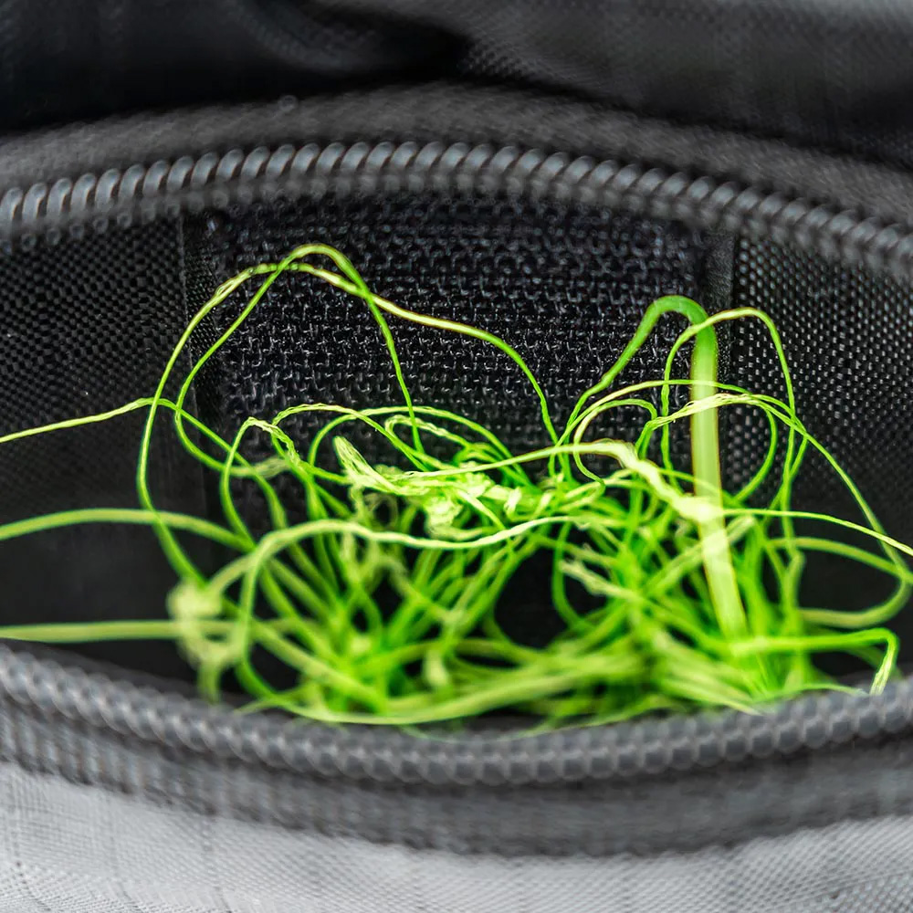 Die LMAB Move Leader & Rig Bag PRO ist die größere der beiden Taschen und beinhaltet 10 Kunststoffbeutel à 120 x 100 mm und 5 Beutel à 200 x 120 mm. Auch diese Beutel sind herausnehmbar und wiederverschließbar, sowie bestens für fertige Vorfächer und Kleinteile geeignet. In den großen Beuteln kann man sogar Spinnerbaits verstauen. Im Inneren befinden sich 2 weitere Fächer, die Platz für eine Mini Tacklebox und reichlich Zubehör bieten. Insgesamt 3 Netztaschen, eine außen und 2 innen, bieten weiteren Stauraum, wobei sich die äußere besonders gut für Schnurreste eignet.