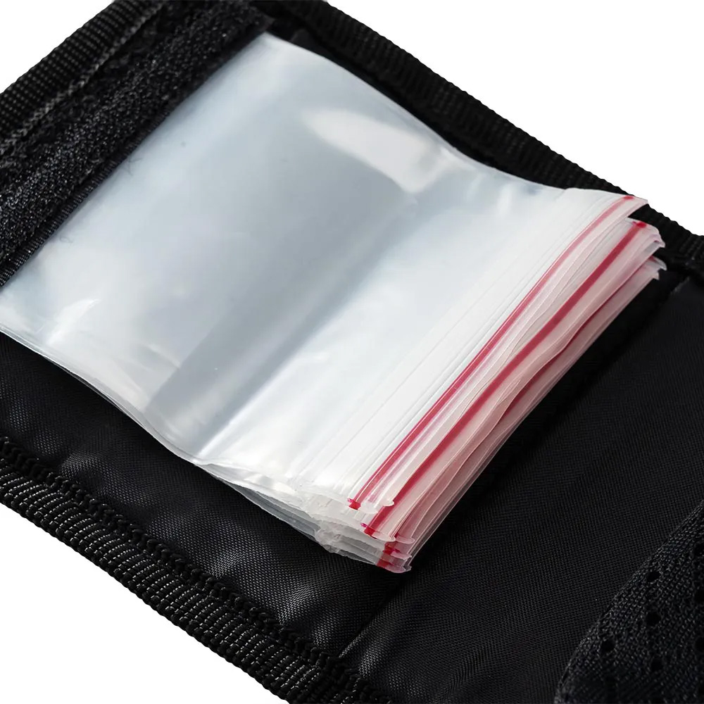 Die LMAB MOVE Leader & Rig Wallet Small ist eine per Klettverschluss verschließbare Vorfachmappe mit 8 herausnehmbaren, wiederverschließbaren Kunststoffbeuteln à 90 x 80 mm. Diese sind perfekt für fertige Vorfächer, aber auch Kleinteile geeignet. Ein Innenfach bietet noch Platz für eine kleine Bitbox für weiteres Zubehör.