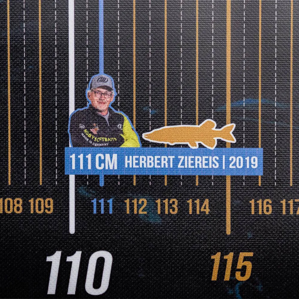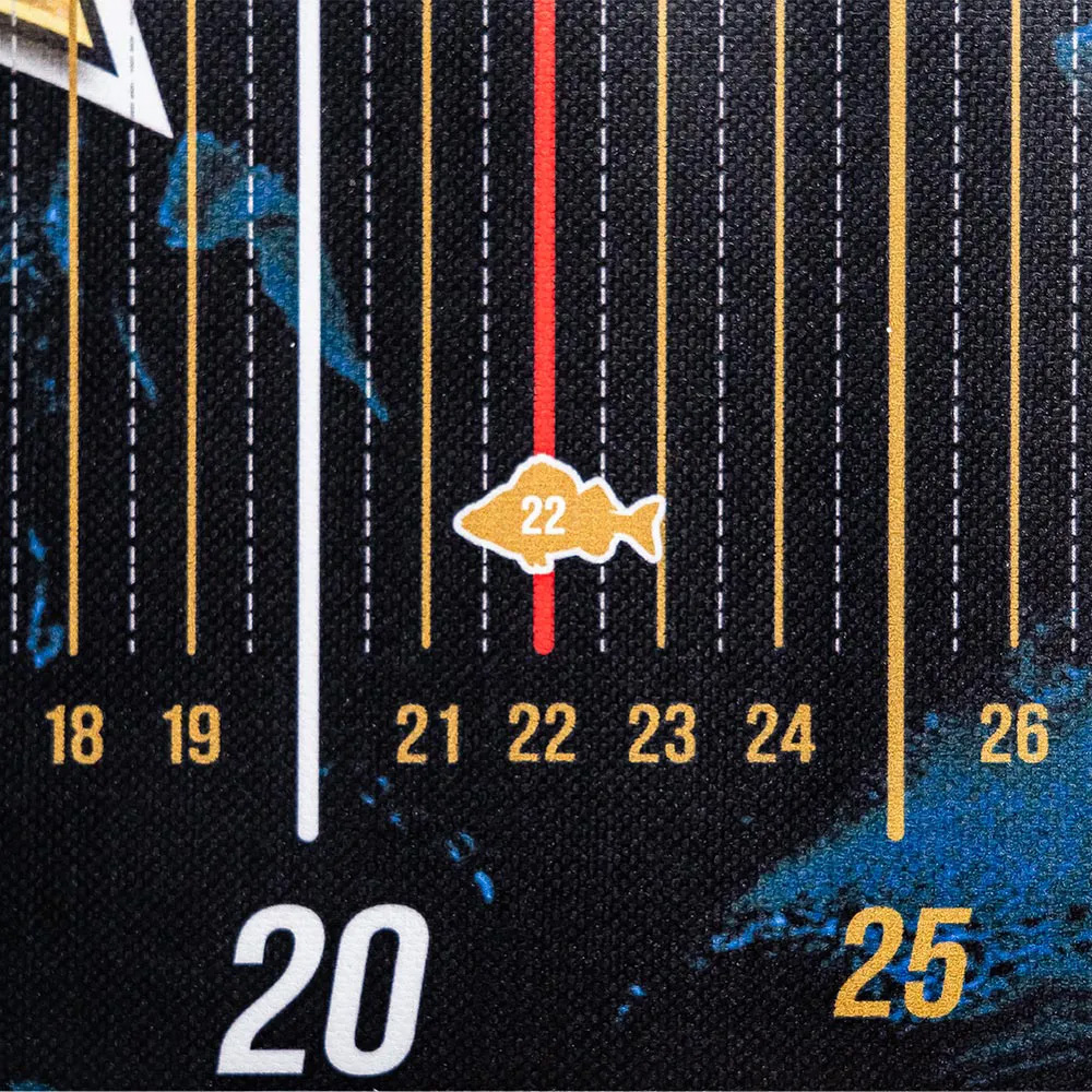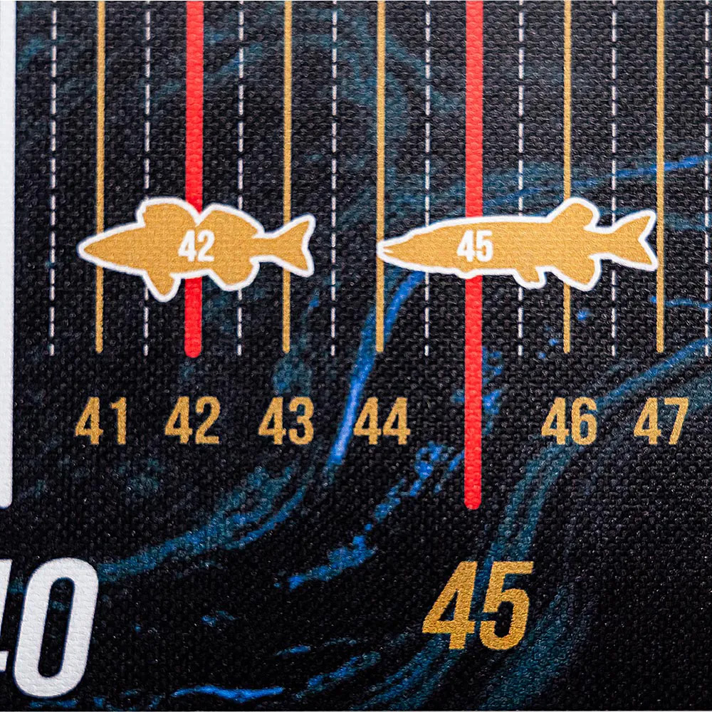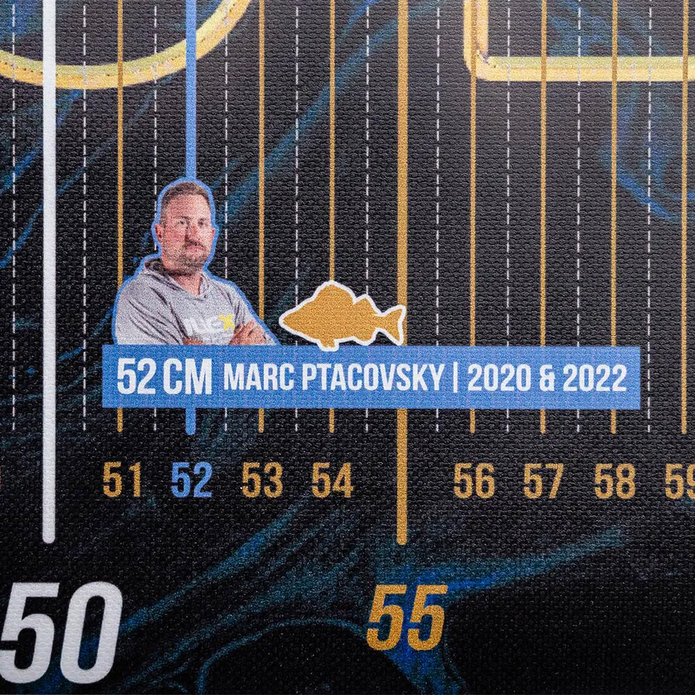Ein gutes Maßband ist am Wasser unverzichtbar und vorgeschrieben. Wie sonst sollte man die Länge seines Traumfisches bestimmen oder untermaßige Räuber erkennen. Ein besonders cooles Mess-Utensil gibt es jetzt von #LMAB. Mit der YPC Bank Measure Mat kannst du am Wasser direkt herausfinden, ob deine Fänge mit den Fischen der Profis mithalten können und sie schonend, schnell und präzise messen. Kein Rumhantieren mit Zollstöcken und Mini-Maßbändern. Der Fisch liegt sicher und Schleimhaut schonend auf dem Maßband aus stabiler Plane. Dank des Acrylwinkels zum Anlegen, bleiben keine Frage zur korrekten Messung offen. Über die integrierte Abschlussleiste, kann die Measure Mat schnell zusammengerollt und transport freundlich mit einem Klettband fixiert werden. Für den Transport ist zusätzlich ein Karabiner am Acrylwinkel befestigt, mit dem man die Measure Mat am Rucksack oder der Tasche festmachen kann. Damit auch absolute Ausnahmefische nicht hinten überstehen, geht die Skala bis 140 Zentimeter. Für Boots- und Uferangler gleichermaßen geeignet.