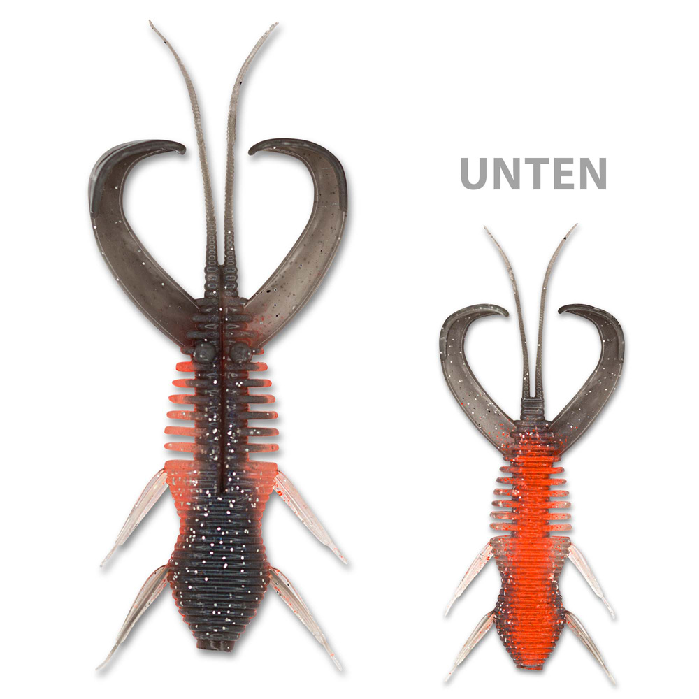Der Craby Lui ist ein speziell für das Angeln auf Barsch und Zander entwickelter Köder. Er ist die perfekte Imitation eines Krebses, die bereits bei geringstem Zug durch seine kleinen Ärmchen an der Seite unwiderstehliche Mikrovibrationen erzeugt. Die beiden großen Scheren am Kopf erzeugen zudem starke Druckwellen unter Wasser und wirbeln viel Sediment auf. Eine weitere Besonderheit ist die mit Luft injizierte Gummimischung. Diese lässt den Köder leicht aufsteigen und vereinfacht somit das Einsaugen um ein Vielfaches. Das Seafood-Flavour und die mit eingearbeiteten Salzkristalle sprechen zu dem den Geruchssinn der Räuber an. Besonders fängig ist die Montage am Carolina-Rig. Aber auch klassisch am Jigkopf präsentiert überzeugt der Craby Lui.