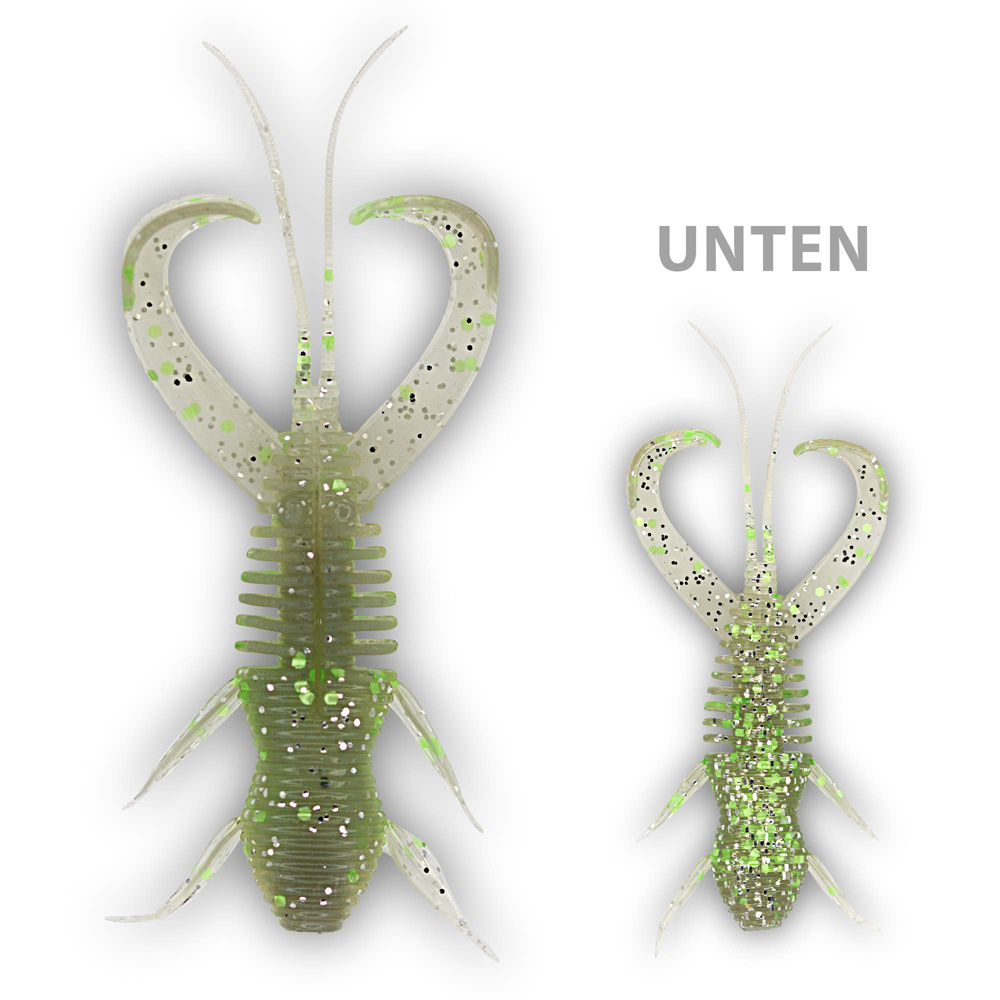 Der Craby Lui ist ein speziell für das Angeln auf Barsch und Zander entwickelter Köder. Er ist die perfekte Imitation eines Krebses, die bereits bei geringstem Zug durch seine kleinen Ärmchen an der Seite unwiderstehliche Mikrovibrationen erzeugt. Die beiden großen Scheren am Kopf erzeugen zudem starke Druckwellen unter Wasser und wirbeln viel Sediment auf. Eine weitere Besonderheit ist die mit Luft injizierte Gummimischung. Diese lässt den Köder leicht aufsteigen und vereinfacht somit das Einsaugen um ein Vielfaches. Das Seafood-Flavour und die mit eingearbeiteten Salzkristalle sprechen zu dem den Geruchssinn der Räuber an. Besonders fängig ist die Montage am Carolina-Rig. Aber auch klassisch am Jigkopf präsentiert überzeugt der Craby Lui.