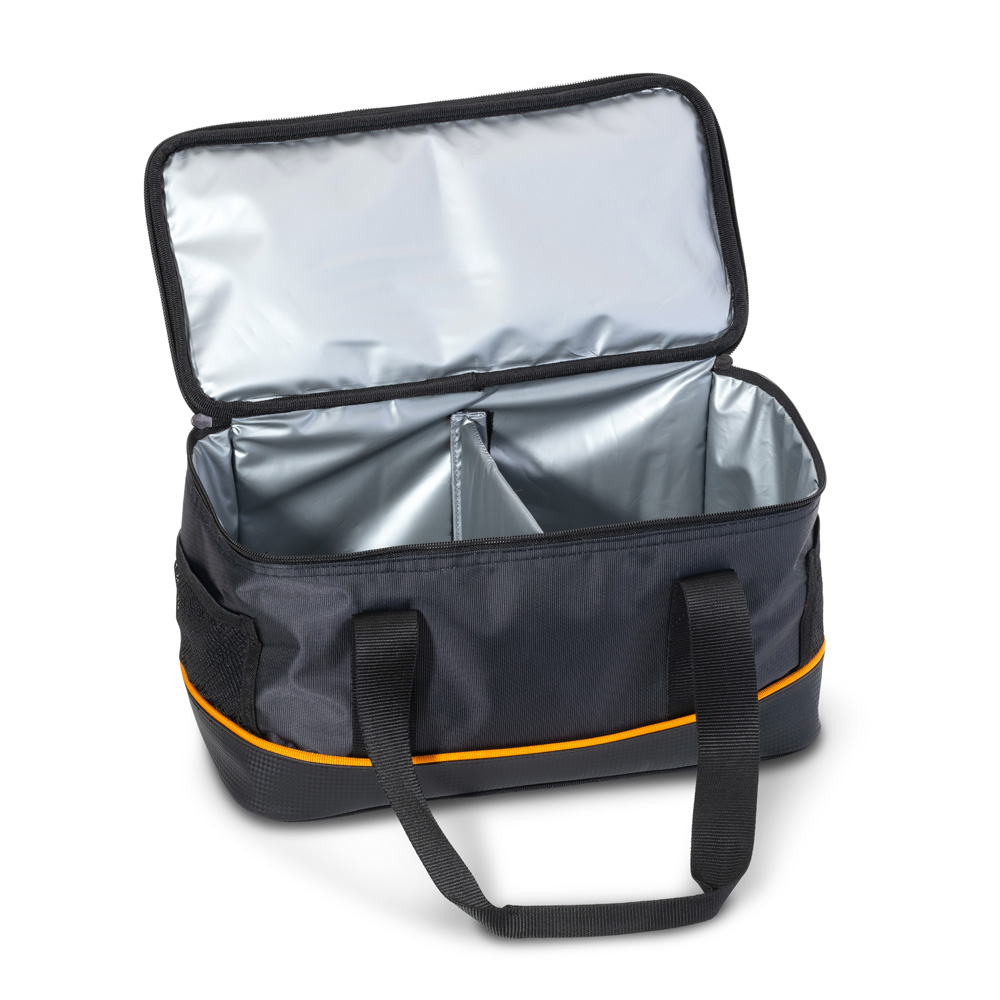 Die Bait Box ist eine Tasche mit isolierender Funktion. Im Inneren befindet sich eine Trennwand. Maden, Caster, Würmer – sämtliche Köder können mit ihr sicher zum Angelplatz transportiert werden. Der Boden ist verstärkt. Seitliche Netzfächer, sowie ein Tragegurt sind ebenfalls vorhanden.