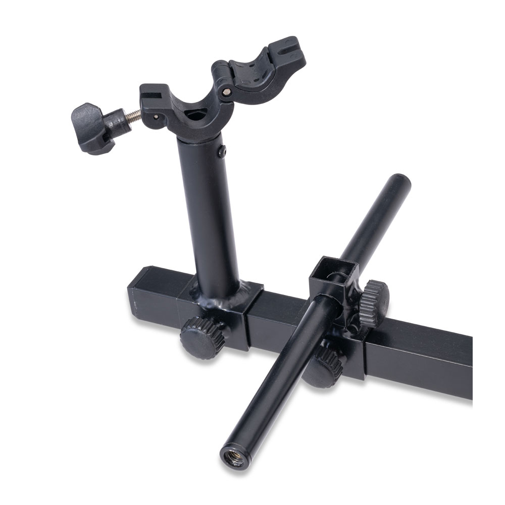 Das Wort "Universal" im Namen des MS Range Unviversal Rod Arm trifft es ziemlich genau. Dieser Rutenhalter ist an beinahe jeder Sitzkiepe, Stuhl, Plattform etc. einsetzbar. Das geht aufgrund der flexiblen Einstellungsmöglichkeiten für Winkel, Länge, Aufnahmedistanz und Höhe. Die zwei Aufnahmehalter sind zudem noch mittels einfach entnehmbarer Adaption für einen Rohrdurchmesser von 20 mm und 25mm einzusetzen und sie lassen sich einfach, auch von der Seite, ohne zuerst von oben über das Rohr geschoben zu werden, anklemmen. Alles ist aus leichtem, aber sehr stabilem Aluminium gefertigt und mit haltbaren, funktionellen Klemmschrauben versehen.
