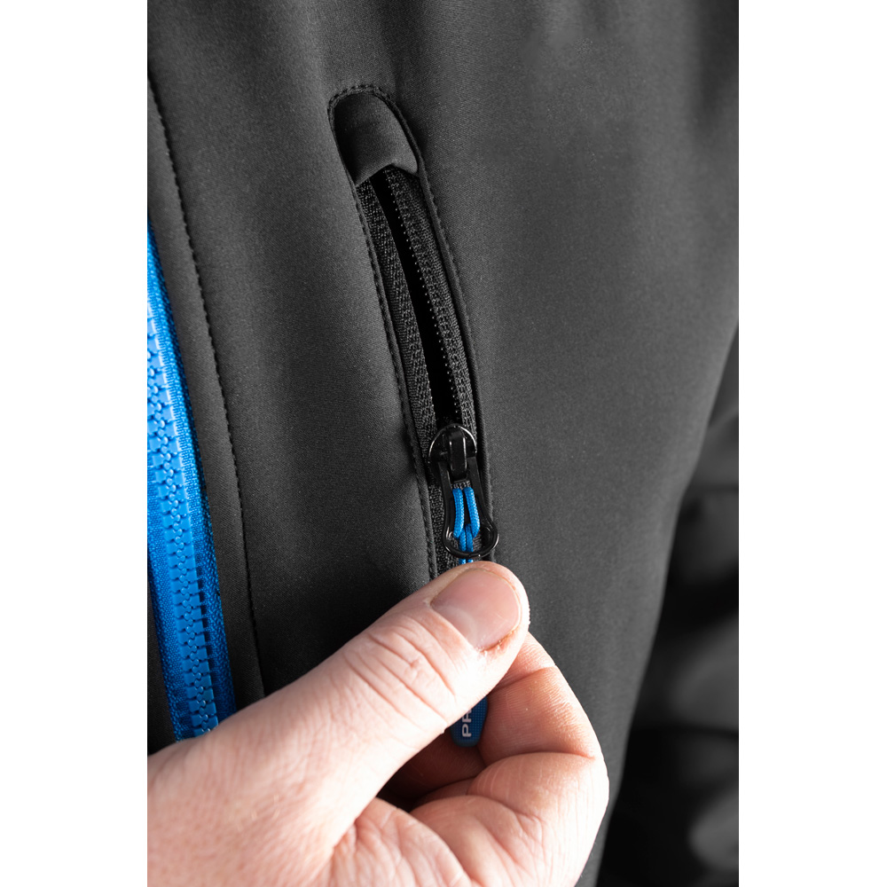 Die Preston Soft Shell Jacke ist perfekt, um an kalten Tagen getragen zu werden, an denen sie fantastischen Schutz vor Wind und Kälte und sogar vor Regenschauern bietet. Sie verfügt über elastische Bündchen, die bewirken, dass kein Wasser Ihrem Arm entlanglaufen kann. Sie verfügt zudem über drei Reißverschlusstaschen, in denen ein Smartphone, Schlüssel oder andere Wertgegenstände ideal aufbewahrt werden können. Die verstellbare Kapuze schützt vor Wind und kleinen Regenschauern, die beim Angeln auftreten können. Da das Soft Shell Material weich und komfortabel ist, kann die Jacke ideal einzeln oder unter einem Regenanzug getragen werden.