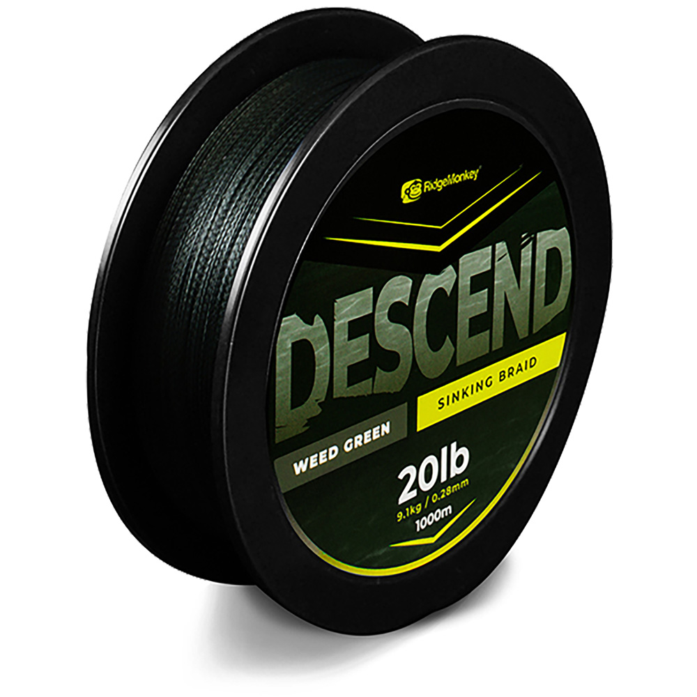 Descend ist ein superschnell sinkendes Geflecht. Dies ist dem runden Profil und dem geringen Durchmesser zu verdanken. Es eignet sich ideal als Hauptschnur für das Fischen in der Ferne und ist gut gerüstet, um auch unter härtesten Bedingungen den Strapazen standzuhalten Dank seiner überlegenen Abriebfestigkeit bei nahezu null Dehnung. Unkrautgrüne Farbe und erhältlich in Durchmessern von 0,28 mm (9,1 kg) und 0,35 mm (13,6 kg) auf Spulen von 300 und 1000 m.
