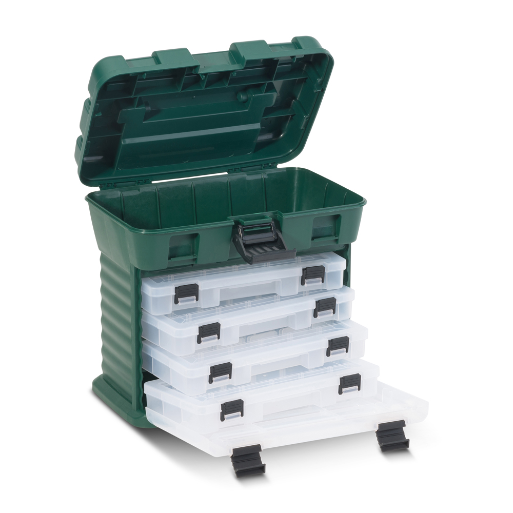 Der Vario Spin Organizer ist ein sogenanntes Multi/Allround Talent!Es handelt sich um ein stabiles, aus verstärktem Kunststoff entwickeltes Transportsystem für den flexiblen Angler bzw. Spinnfischer.Das intergrierte Schubladensystem beinhaltet insgesamt 4 Boxen, die im Lieferumfang enthalten sind.Das Hauptfach eignet sich hervorragend für das Verstauen von diversen Accessoires rund um den Angelsport.