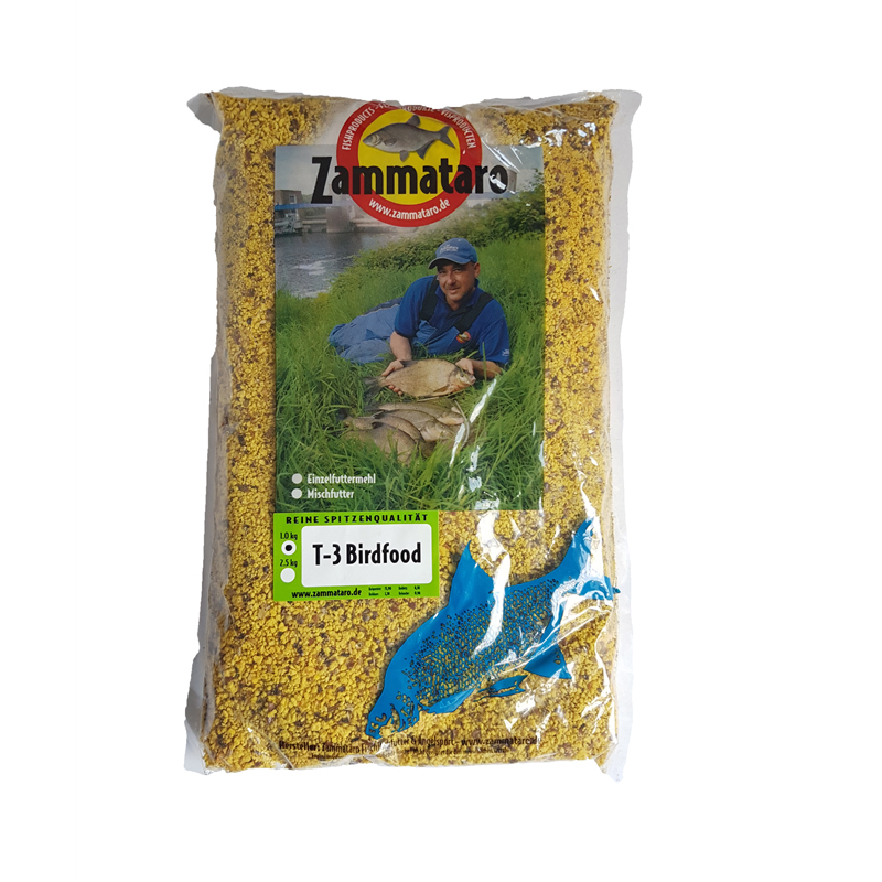 Zammataro Birdfood ist ein proteinhaltiges, grobkörniges Zusatzfutter, das alle großen Fische lieben. Die zerquetschten Sämereien und eine spezielle Duftkombination machen auf den Futterplatz aufmerksam. Der hohe Anteil an Nährstoffen hält die Fische auf dem Platz. Anteil bis 15% im Lockfutter.