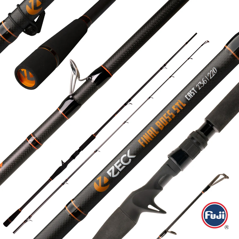 Wer mit der Zeck Final Boss STL loszieht, hat es ganz klar auf den "Endgegner" in jedem Gewässer abgesehen. Mit einem Wurfgewicht von 220 g lassen sich, in Kombination mit einer Baitcaster oder Multirolle, auch wirklich enorm schwere Big Baits stundenlang werfen.
